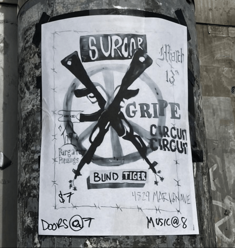 Come out and see our very first show at 4829 Marion Ave! We have an incredible bill of GRIPE (Houston), Blind Tiger (Florida), Circuit Circuit (Memphis), Aversive Control (Memphis), and suroor (Karachi/Memphis). Show starts at 7p and music starts at 8p.